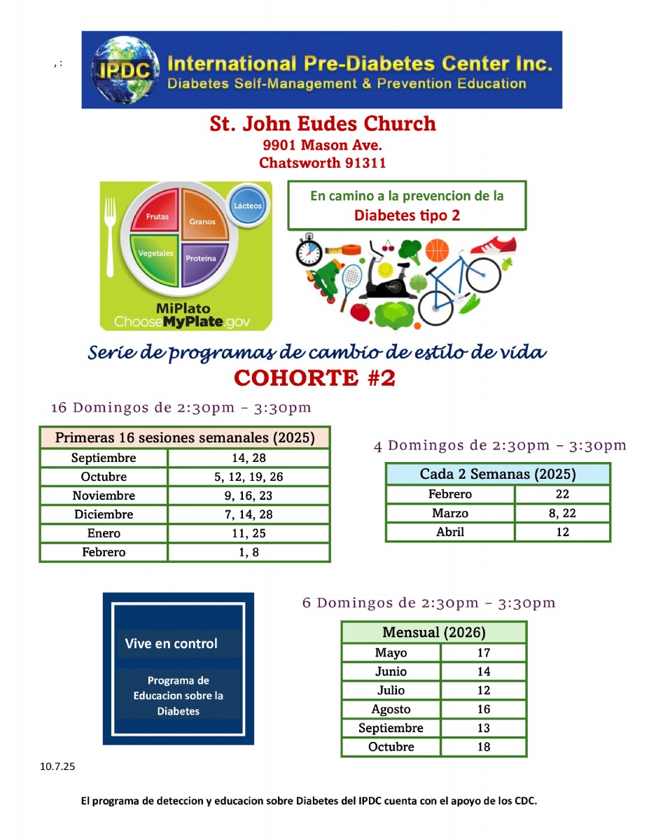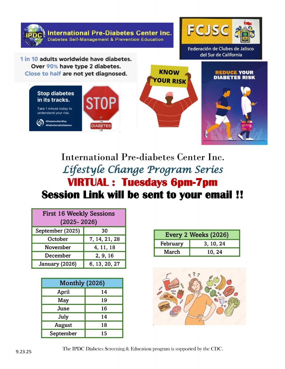 Check Class Schedules and Contact US for Locations: Webpage: IPDC4DM2.org (Diabetes); PDPTCenter.org (Pre-Diabetes) Message: (844) STOP DM2; (844-786-7362) Office (818) 714-2066 |