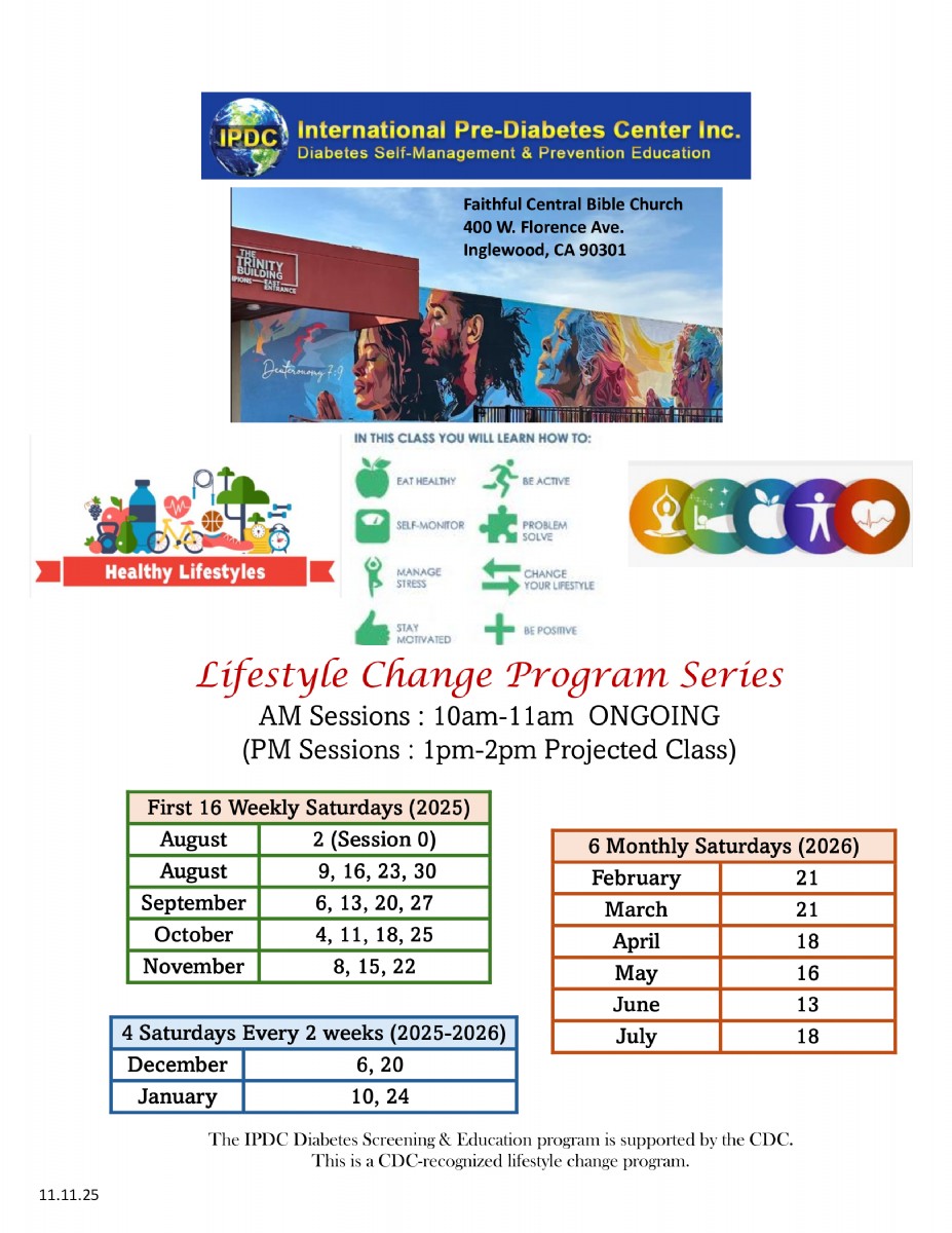 Lifestyle Change Program Series at the following locations: 1. New Christ Memorial Church(ON GOING) 13333 Vaughn St., San Fernando, CA 91341